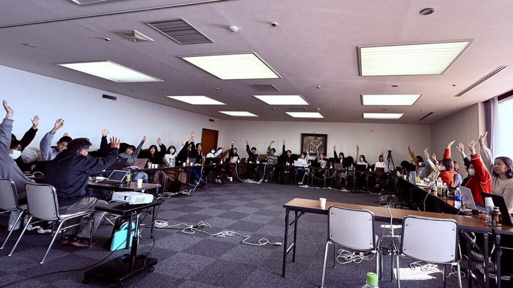 さまざまな場所・参加者で年26回開催される研修合宿では、社員自身のビジョン(やりたいこと)と、会社から求められるミッション(やるべきこと)を重ね合わせ、未来を考える機会を設けています。