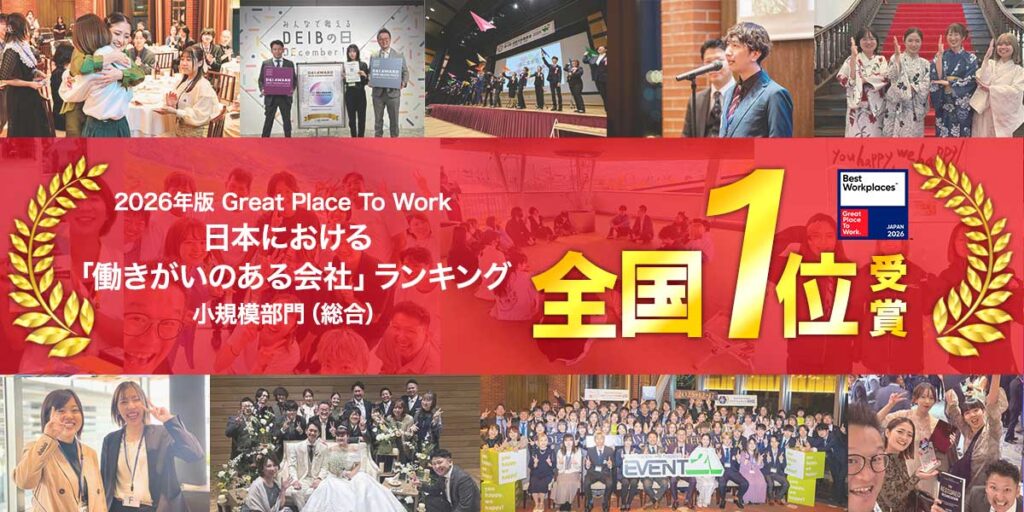 この度イベント21は、Great Place To Work® Institute Japan(以下、GPTW)が発表した、2026年版「働きがいのある会社」ランキングの小規模部門(従業員25~99人)において、日本1位に選出されました。