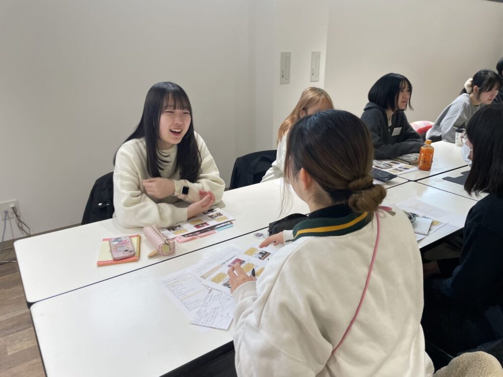 自分が思っていることを伝える大切さ学びました。これまで聞くことが多くて、そこに賛同する立場の方が多かったです。そこで私は「人の目を気にしてしまう」「人に嫌われないか気にしてしまう」けど、その点について社長はどう思いますかと聞くことができました。その際にいただいた回答から、それは共感性が強みだけど、でもそれでは目的達成のためにはダメで、目的達成や相手のことを想うのならばきちんと伝えることが大切であると気付かされました。