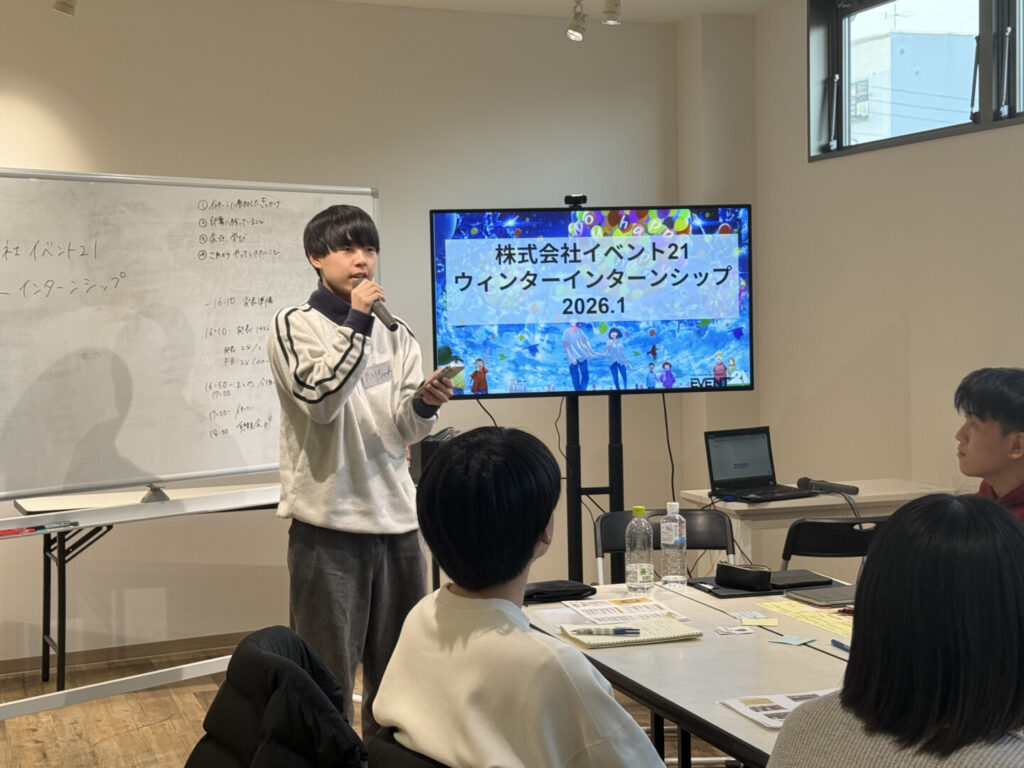 こんにちは!イベント21の関西ウィンターインターンシップ2026に参加した、成安造形大学 芸術学部芸術学科のY.S(26卒内定者/学業のため参加2日)です。